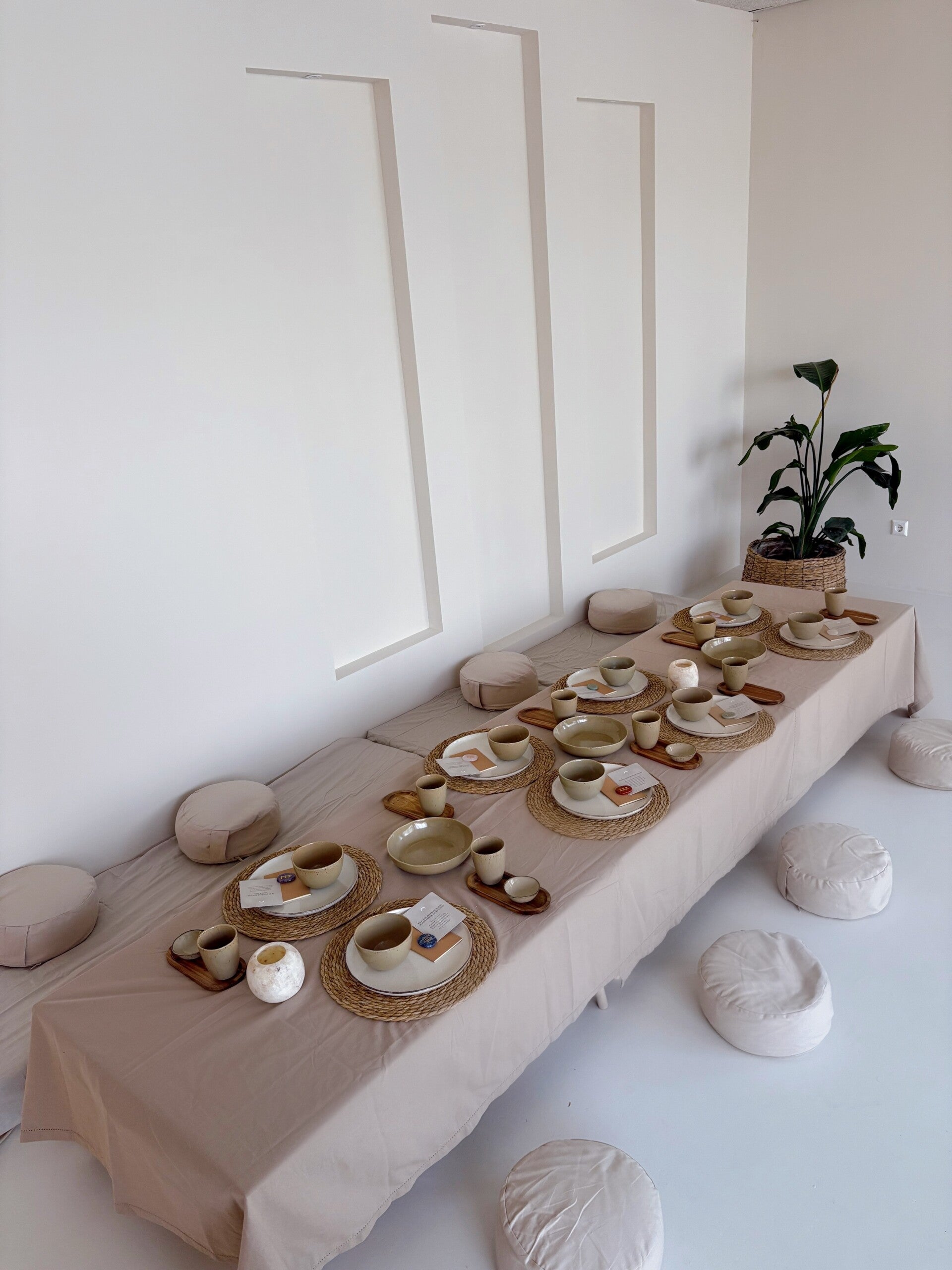 Na deze diepe verbinding schuiven we aan tafel voor een heerlijke lunch met hartige en zoete gerechten genieten, lachen en gewoon zijn.